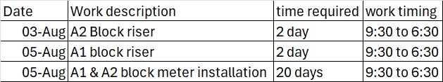 04/Aug/2025: 2PM: Riser pipe work started in A Blocks (will be working without break to deliver asap)