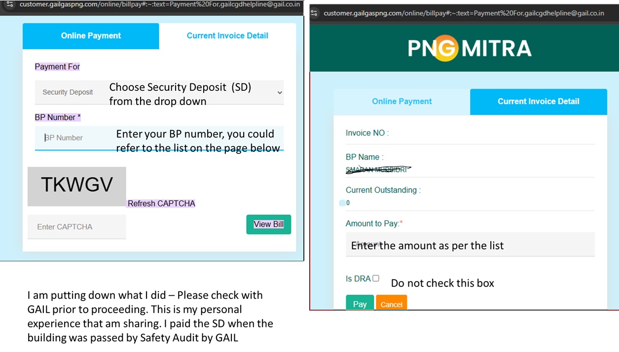 3 to pay the security deposit you can use the GAIL Gas link as per the screenshot below, at the time of commissioing in your apartment