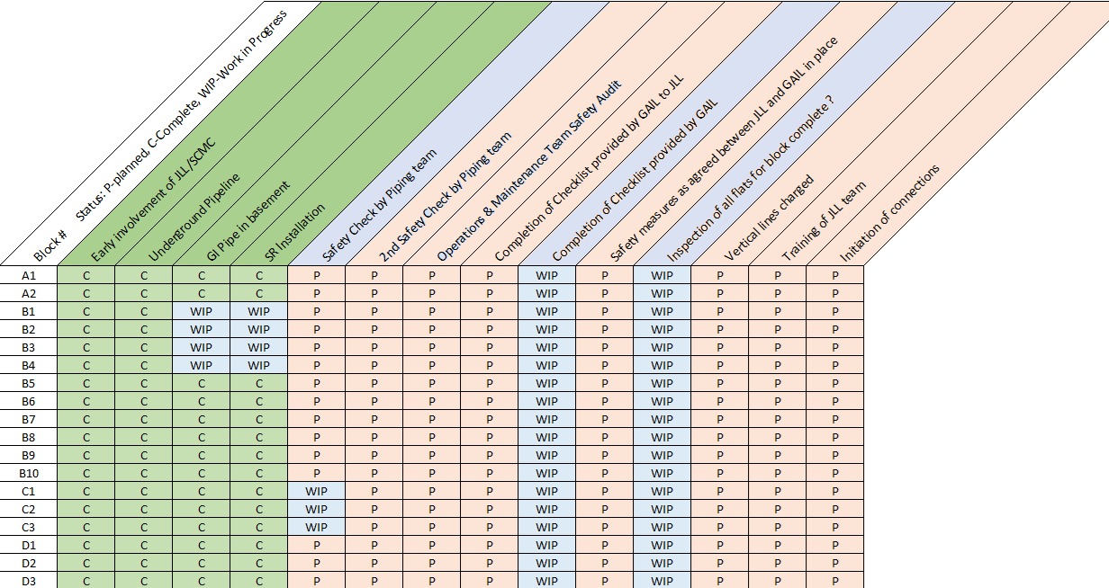 Kindly note that there is heavy demand for GAIL supply from various apartments, and is taking considerable focus to ensure we do not get left behind. Hence request residents to kindly cooperate.